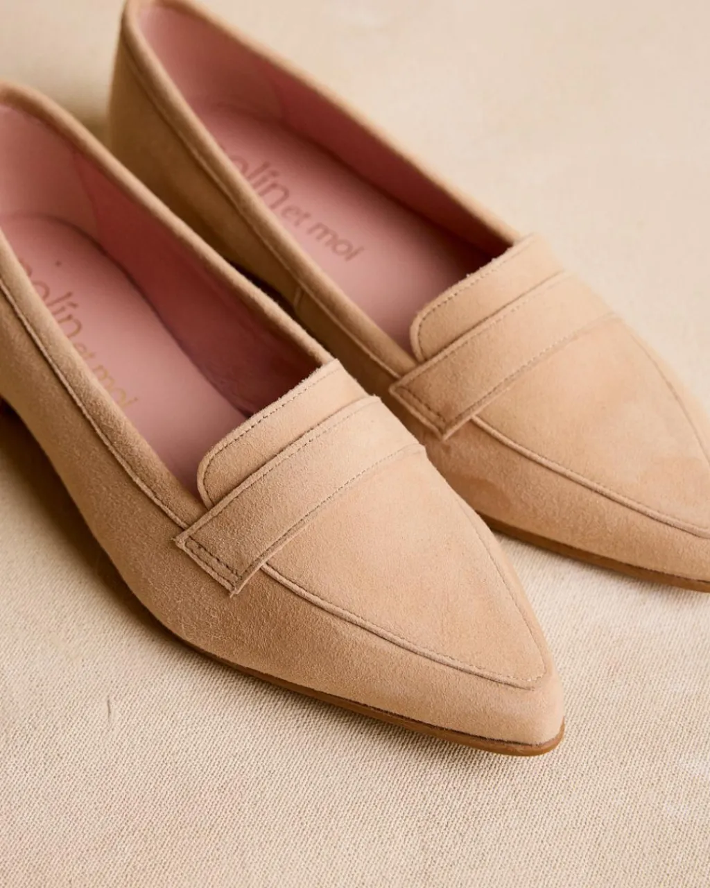 Mocassin plat cuir de couleur sable. Un modèle élégant avec un extérieur made in cuir. Un design d’une légèreté et d’un confort extrêmes ; Résistant, intemporel et très polyvalent.