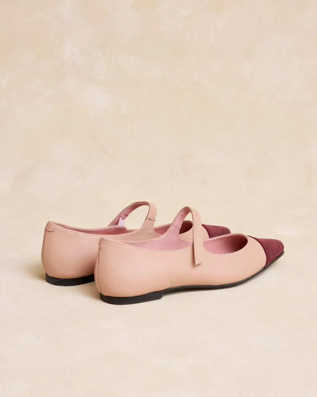 Babies de la peau colorée du maquillage. Bout pointu dans le ton violet. à lanière sur le cou-de-pied. C’est une chaussure différente et confortable à combiner avec des pantalons et des robes.