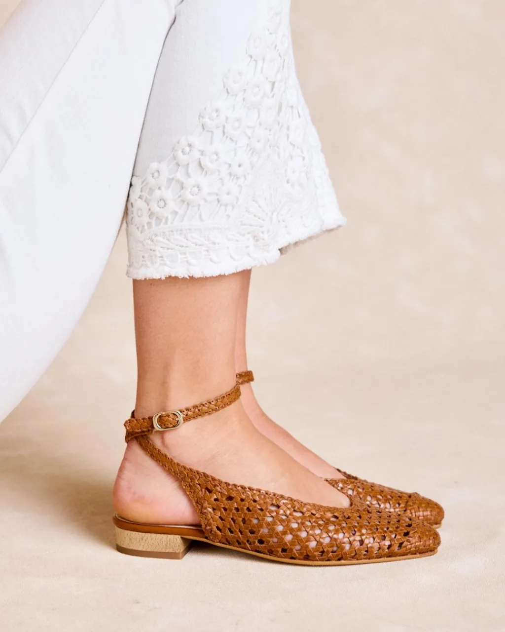 Ballerines bride arrière en cuir avec finition en cuir tressées . Encolure ronde. Bout légèrement arrondi. Soutien de la cheville par une bride tressée qui s’enroule autour de la cheville formant une double bride pour un ajustement confortable. C’est un ballerines idéal et confortable à combiner cette saison avec vos vêtements préférés.