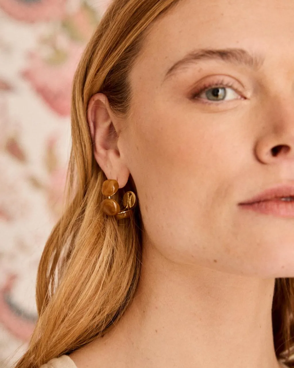 Boucles d’oreilles créoles en or avec détails ronds en pierre moka.