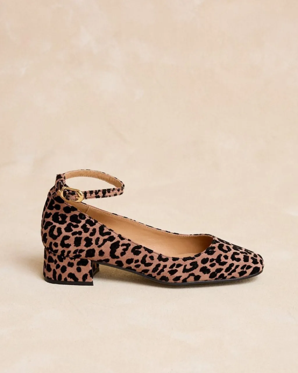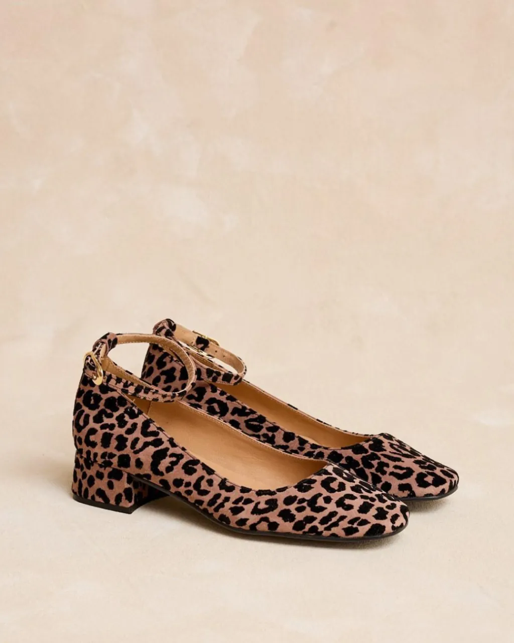 Imprimé animalier en daim Mary Jane avec une fine bride à la cheville, un crochet à boucle. Bout rond et semelle plate. Très confortable et idéal pour vos looks les plus audacieux à porter au quotidien, la touche parfaite pour vos tenues avec un jean. De plus, l’imprimé animalier est une tendance pour cet automne-hiver.