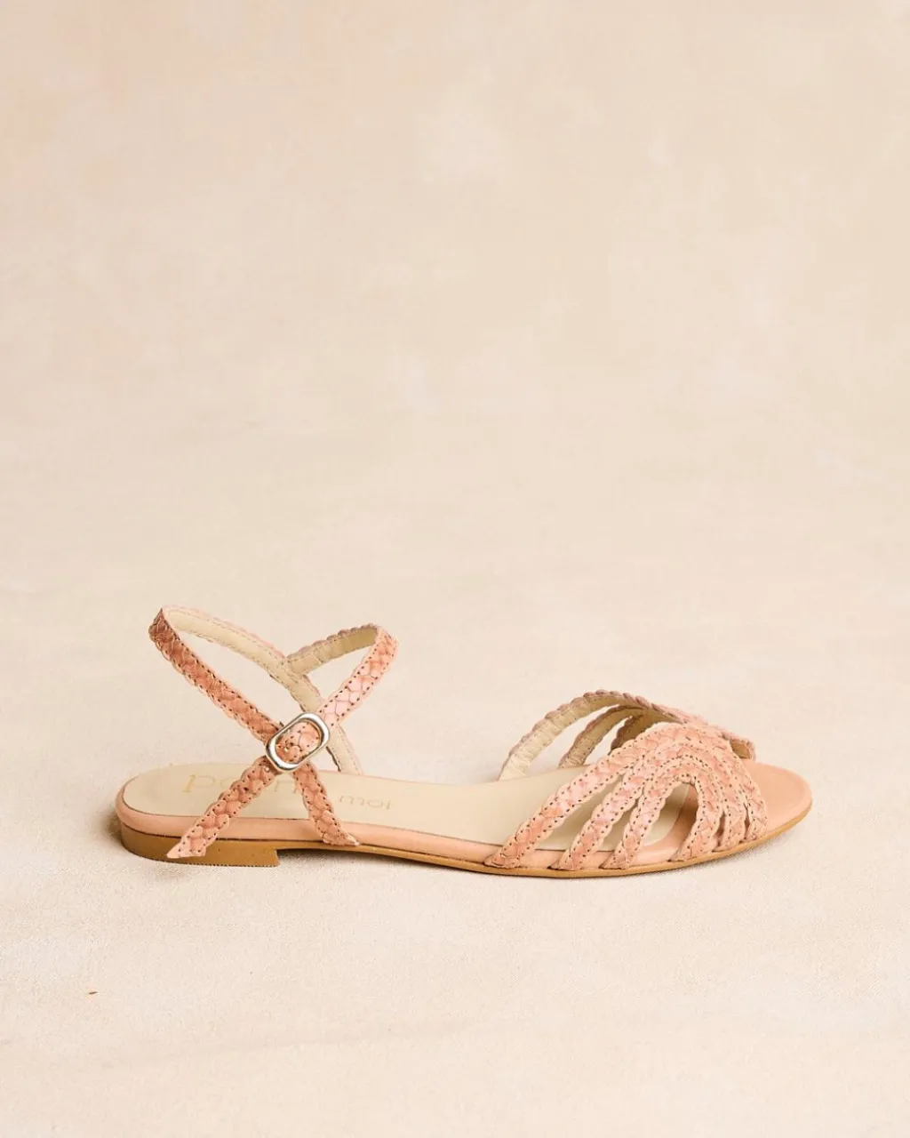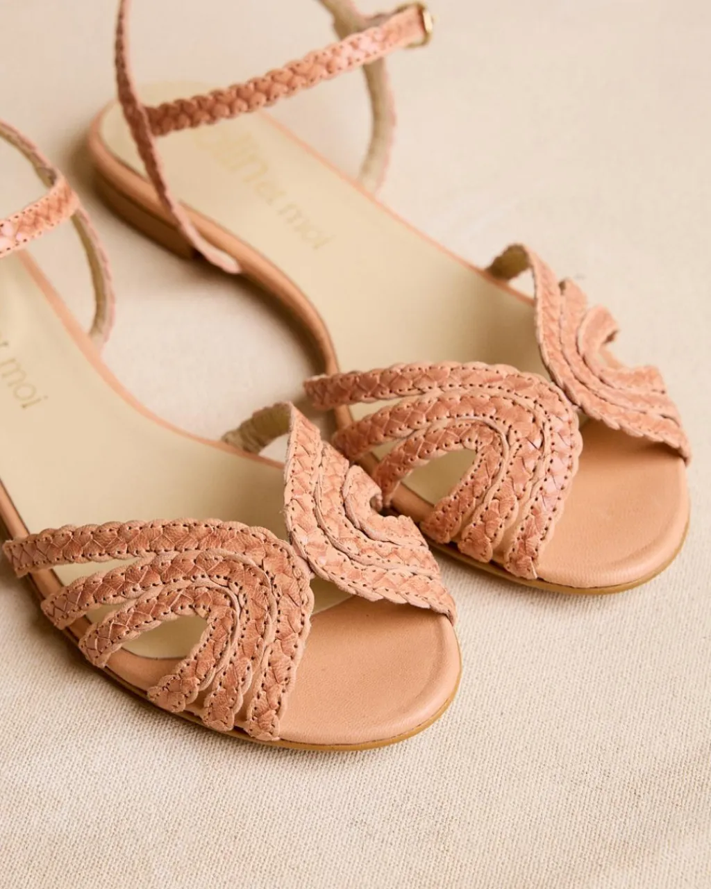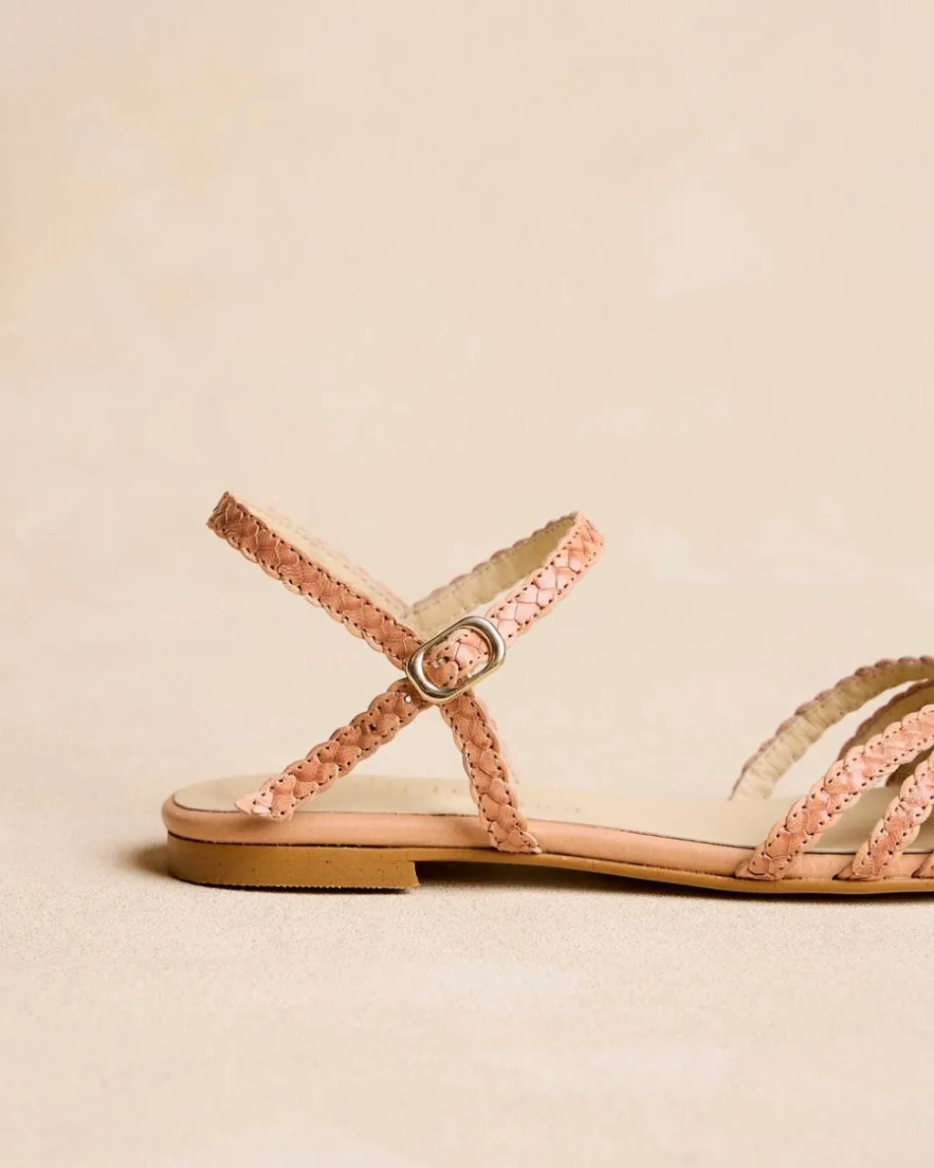 Sandale tressée en cuir camel. Tige avec triple bande tressée avec détail au centre. Talon fermé par une bride en cuir avec boucle pour un meilleur ajustement. Petit talon carré effet bois. Une sandale confortable et très polyvalente à porter au quotidien.