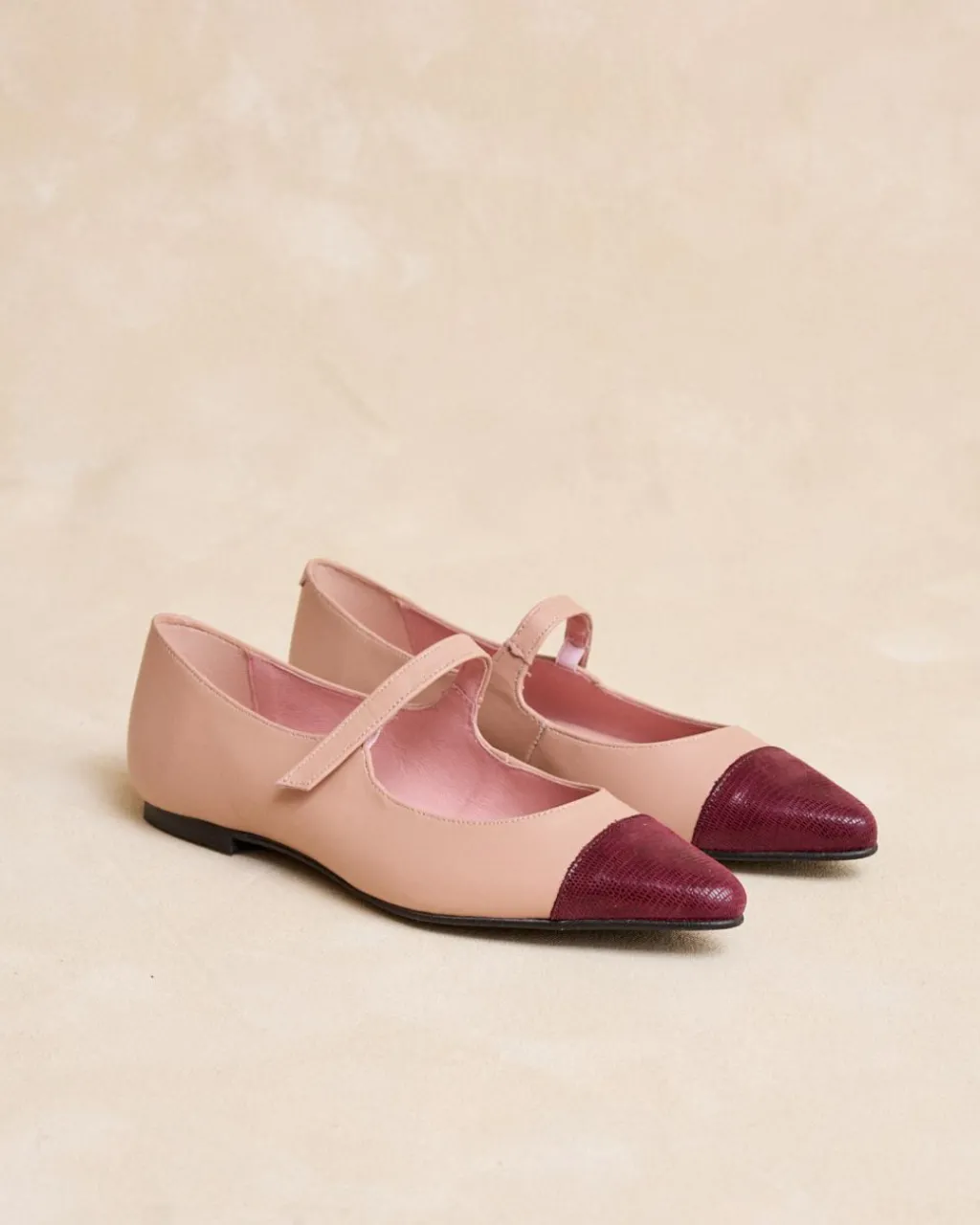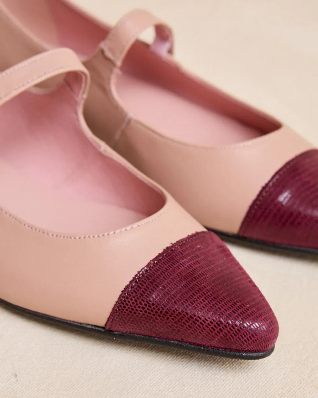 Babies de la peau colorée du maquillage. Bout pointu dans le ton violet. à lanière sur le cou-de-pied. C’est une chaussure différente et confortable à combiner avec des pantalons et des robes.
