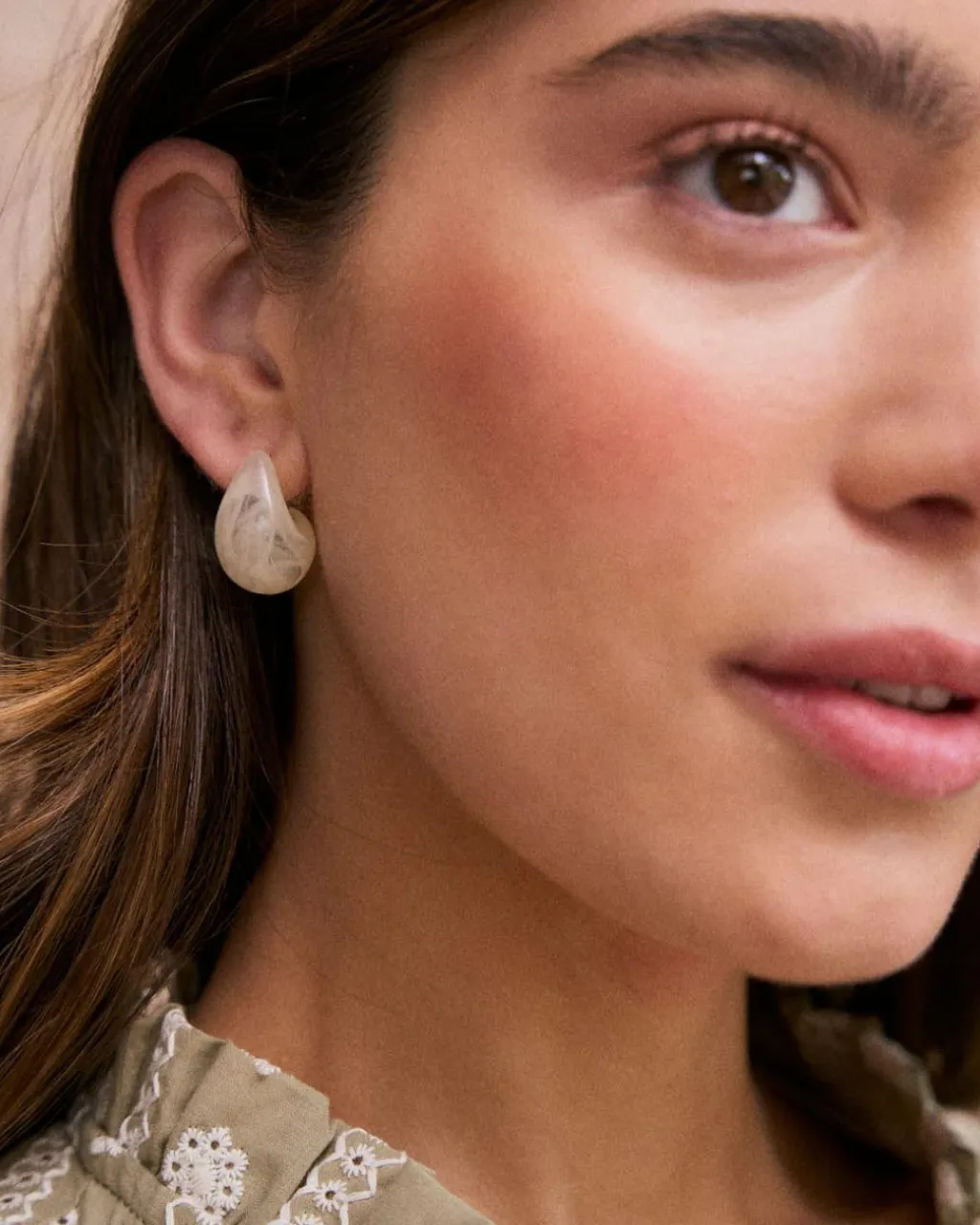 Boucles d’oreilles créoles larges dans le ton nude.