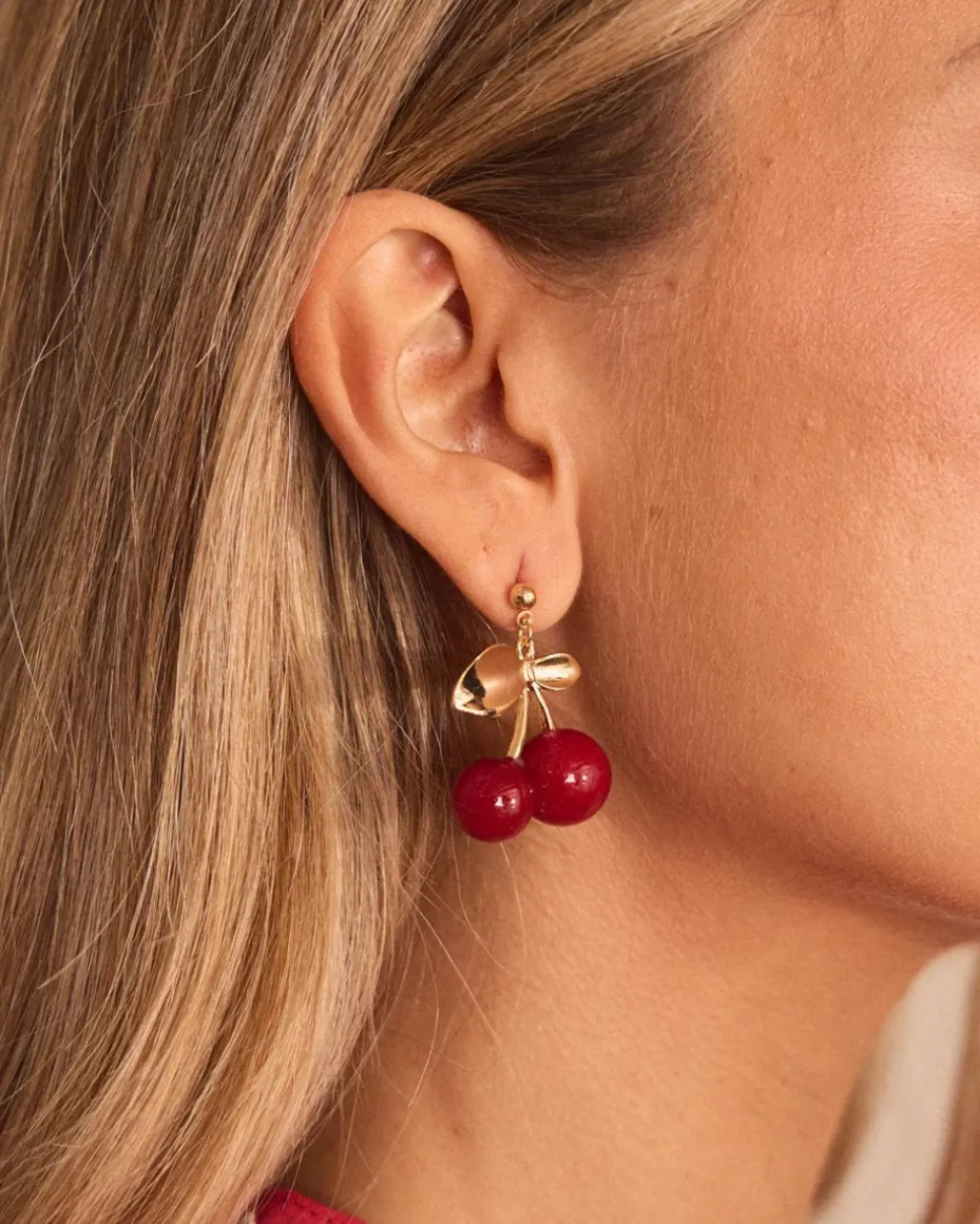 Boucles d’oreilles pendantes avec des détails en cerisier et en or.