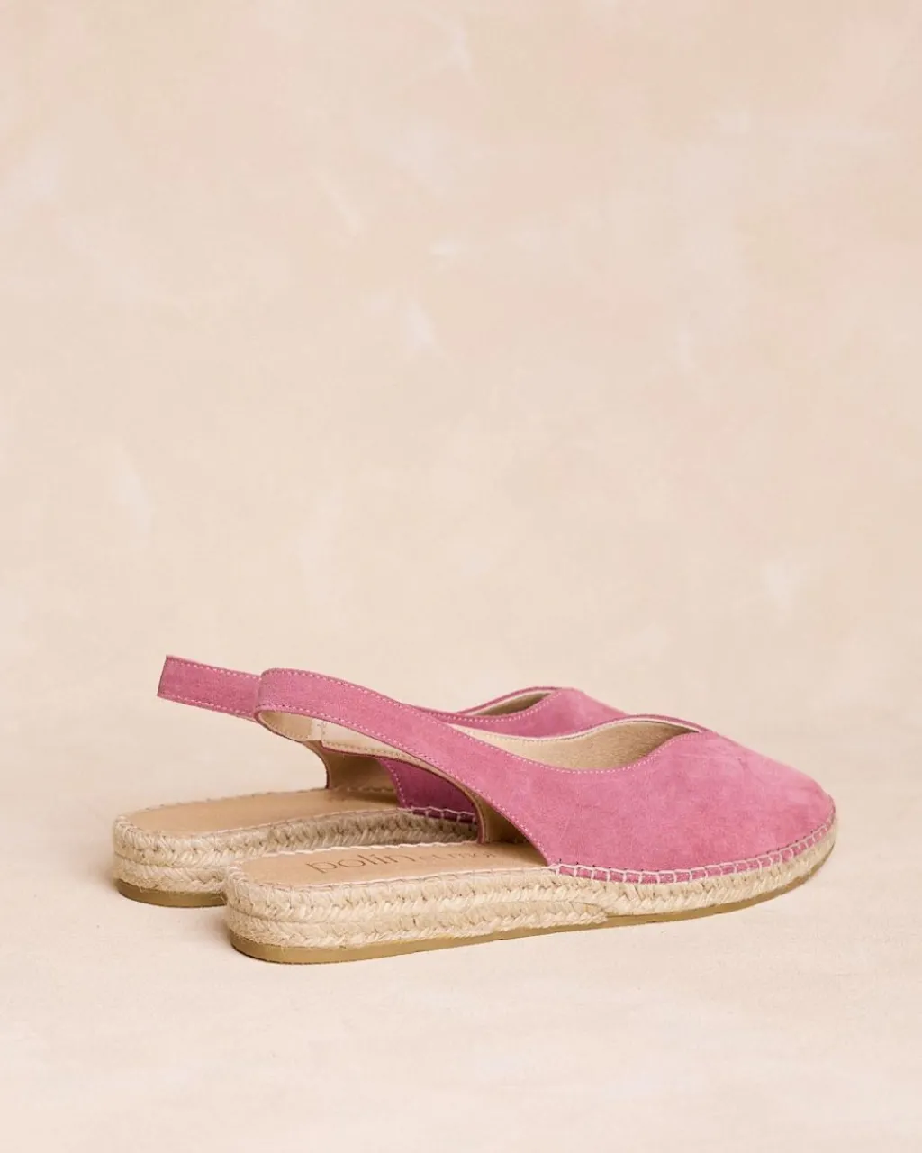 Espadrille plate en daim de couleur framboise. Bout légèrement pointu. Encolure arrondie. La semelle intérieure est dotée d’un coussinet pour plus de confort. Une espadrille confortable et féminine à porter au quotidien.