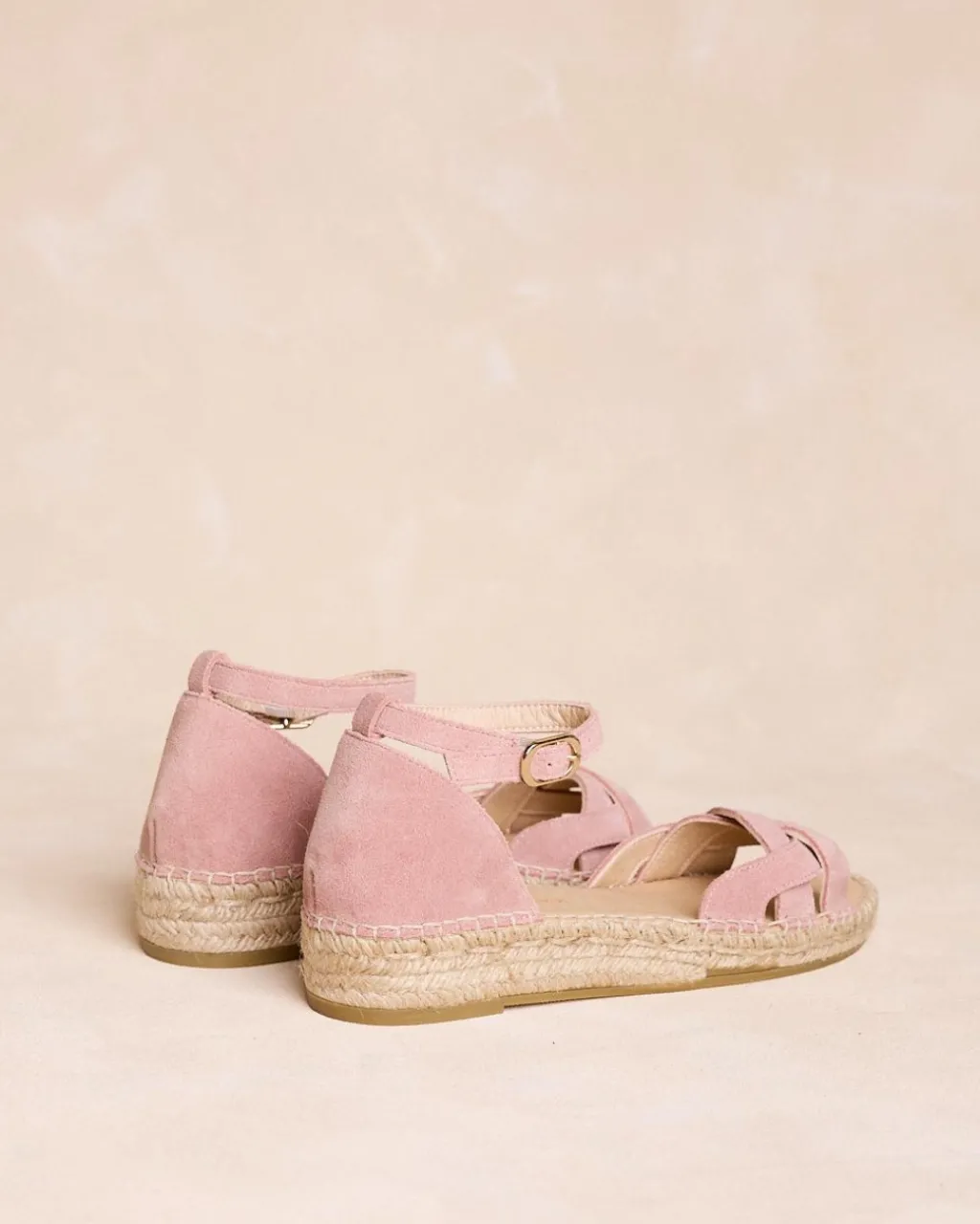 Espadrilles de couleur maquillage avec semelle en jute et tige croisée. Ils ont un bracelet de cheville réglable qui offre un soutien et une touche féminine, parfait pour des looks frais et délicats.