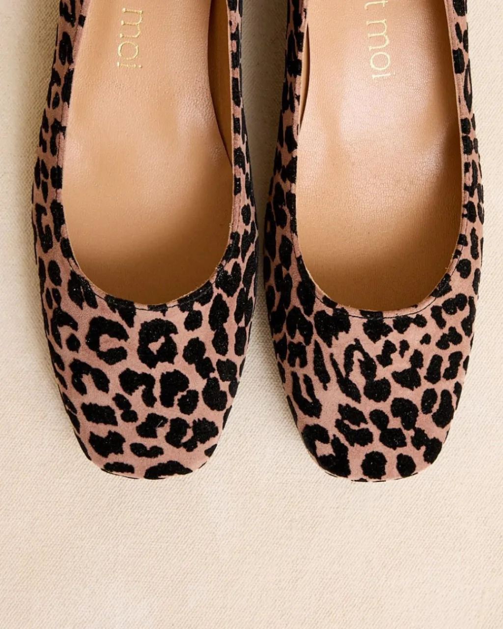 Imprimé animalier en daim Mary Jane avec une fine bride à la cheville, un crochet à boucle. Bout rond et semelle plate. Très confortable et idéal pour vos looks les plus audacieux à porter au quotidien, la touche parfaite pour vos tenues avec un jean. De plus, l’imprimé animalier est une tendance pour cet automne-hiver.