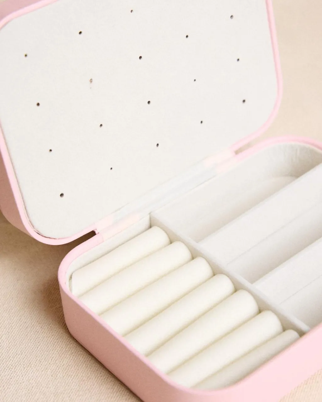 Rangez et organisez vos accessoires avec cette bijoutier rectangulaire rose. Son design compact et élégant comporte des compartiments rembourrés idéaux pour protéger vos bagues, boucles d’oreilles, colliers et bracelets