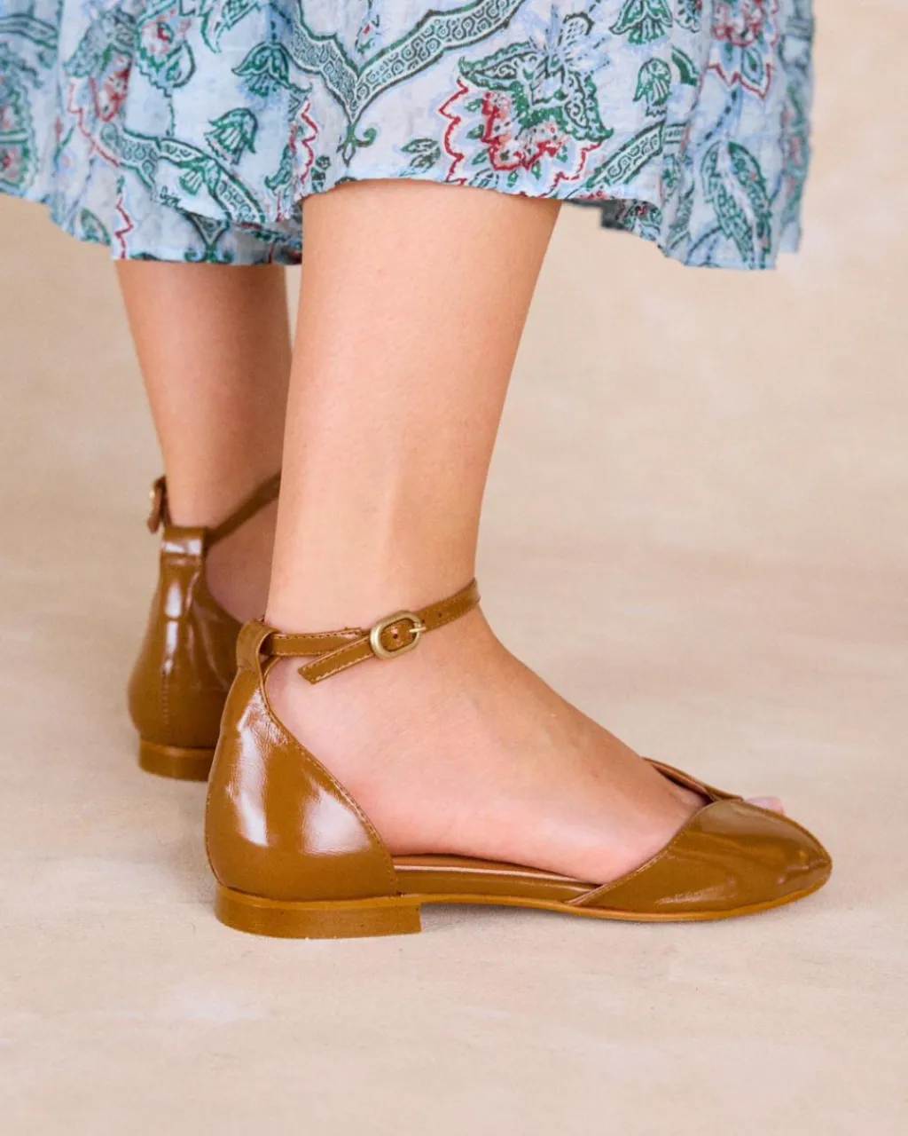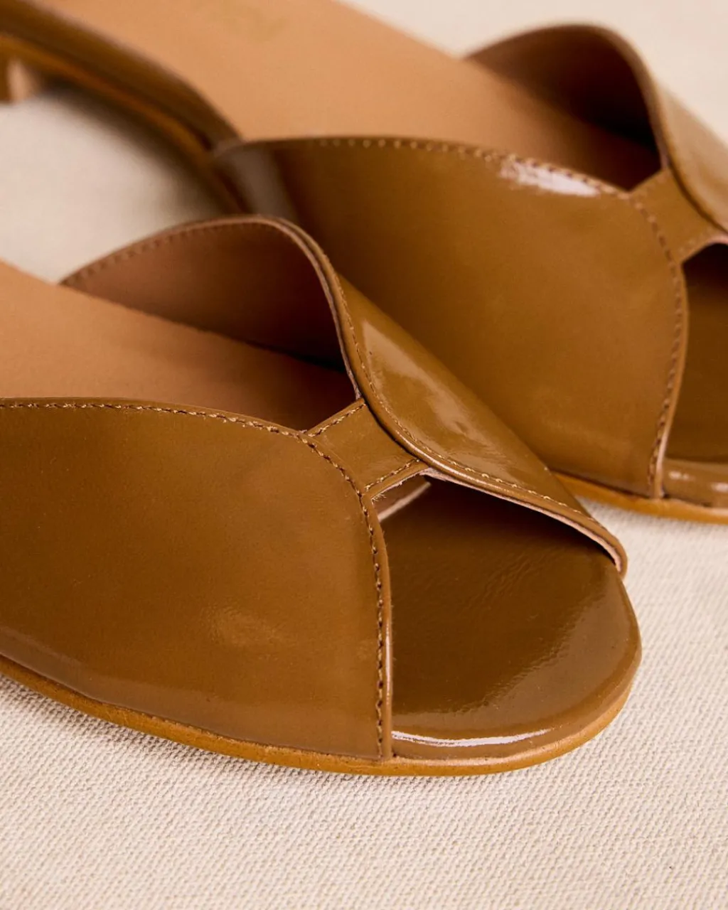 Sandales camel à bout ouvert avec bride délicate à la cheville. Parfait pour un look frais et féminin.